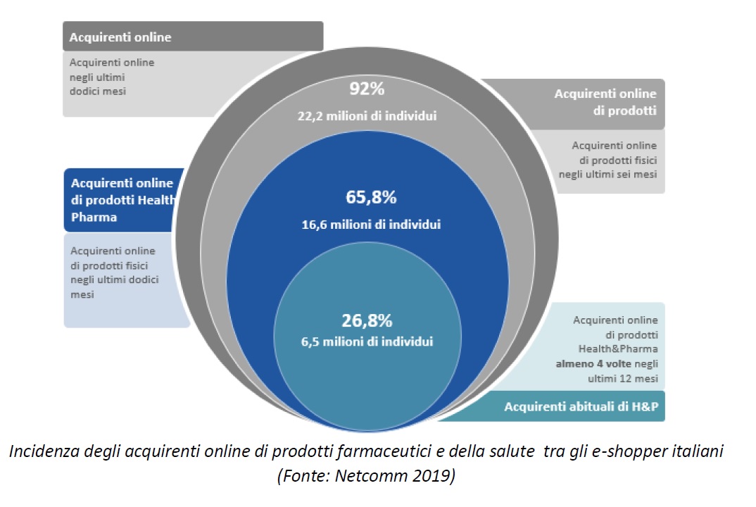 L’acquirente “tipo” di una farmacia online ha un’età media superiore rispetto alla media degli e-shopper di altri settori, tra i 35 e i 54 anni. Per quanto concerne i prodotti farmaceutici e sanitari, il 55% degli e-buyer è composto dall’universo femminile. Nel complesso si osserva un’elevata concentrazione di acquirenti abituali nei piccoli centri abitati, probabilmente dovuta a un minor accesso ai canali tradizionali o a canali con un’offerta di categoria poco articolata. Gli e-shopper dell’ecommerce Beauty hanno un livello di istruzione e titolo di studio in media maggiore rispetto alla popolazione totale degli acquirenti online A livello geografico sono prevalentemente nelle regioni del nord seguite a debita distanza da centro e Sud.